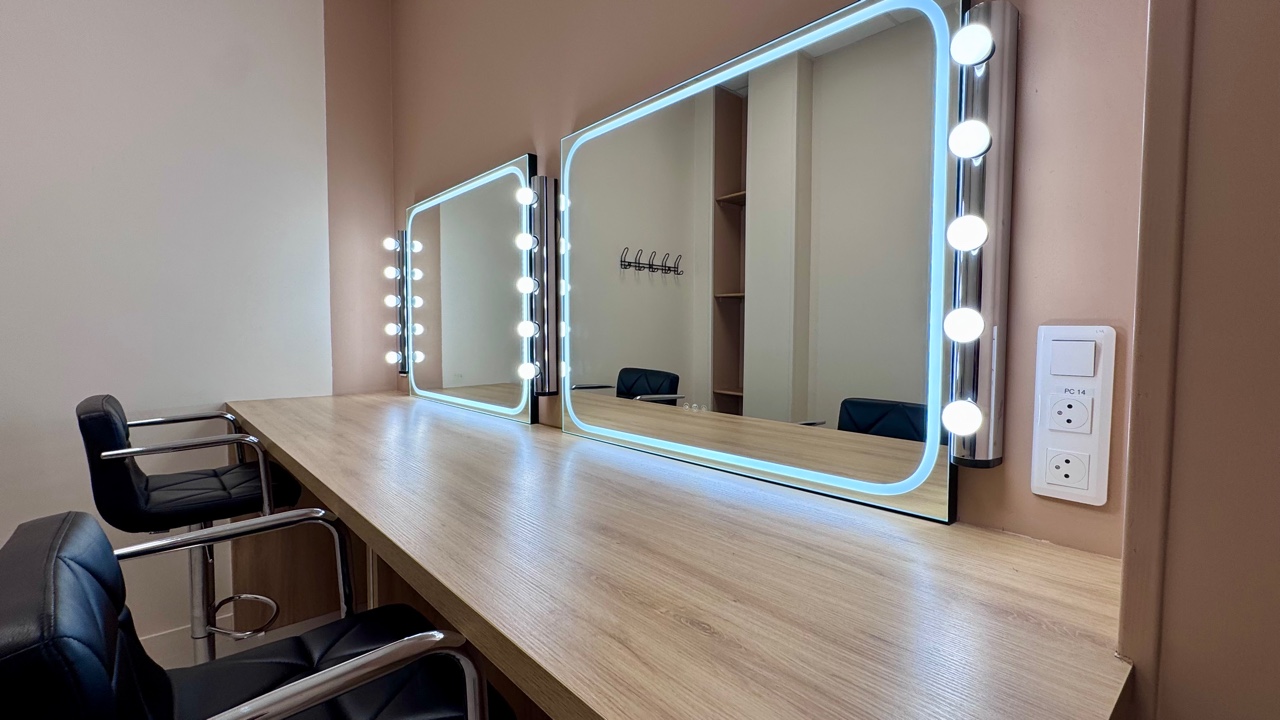 Dans une enceinte de 500 m2, le plateau « Cyclo 120 m2» comprend un fond vert incruste, un fond blanc ainsi qu’un fond noir (borniol). Insonorisé, il est idéal pour vos tournages avec prise de son. Le grill vous permet d’accrocher vos installations électriques (nacelle à disposition) avec un minimum d’emprise au sol et de gérer les sources via un Ipad en Dmx.