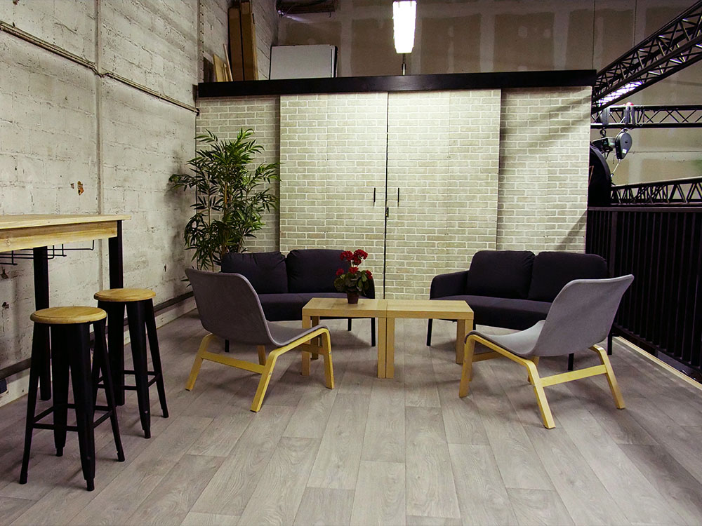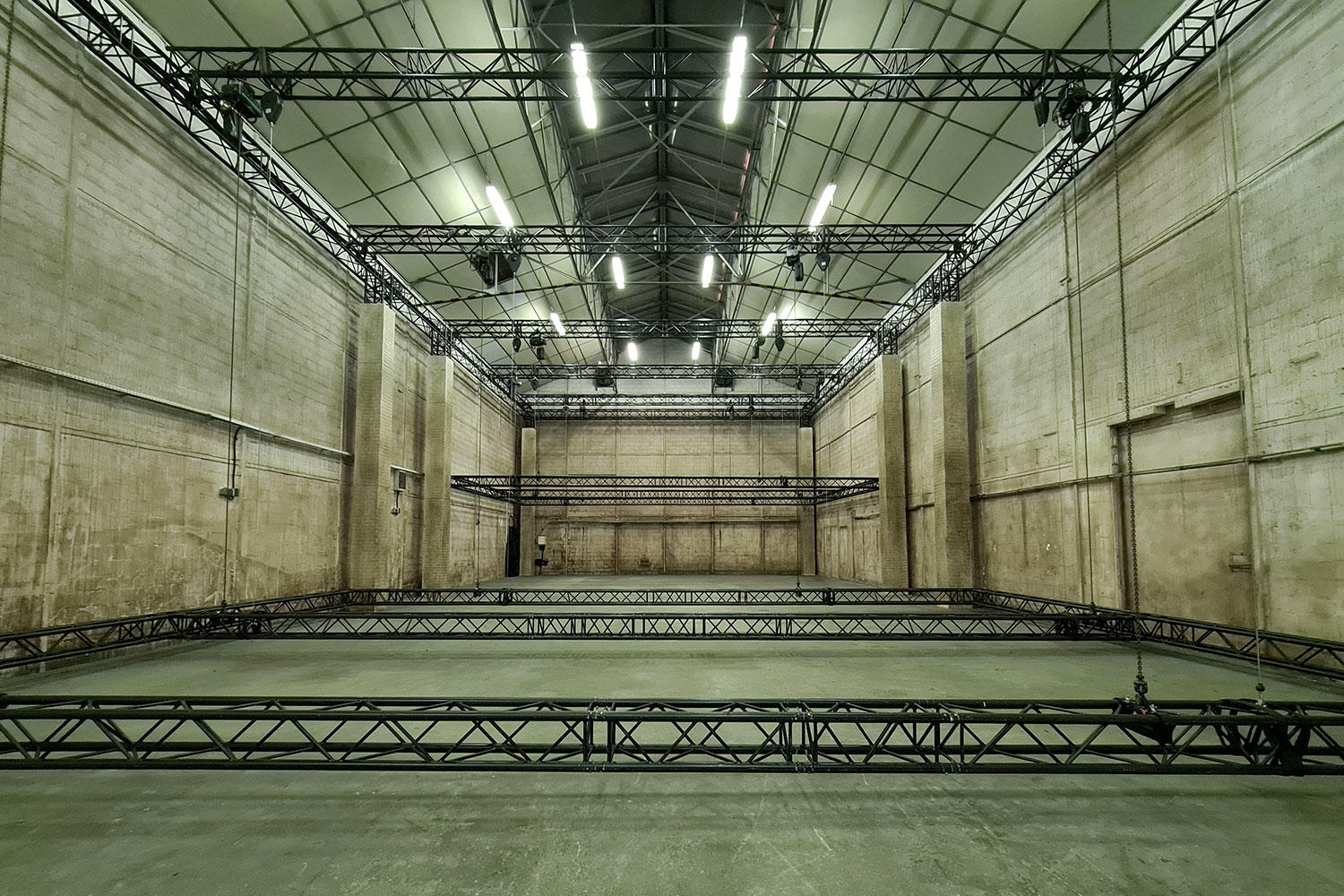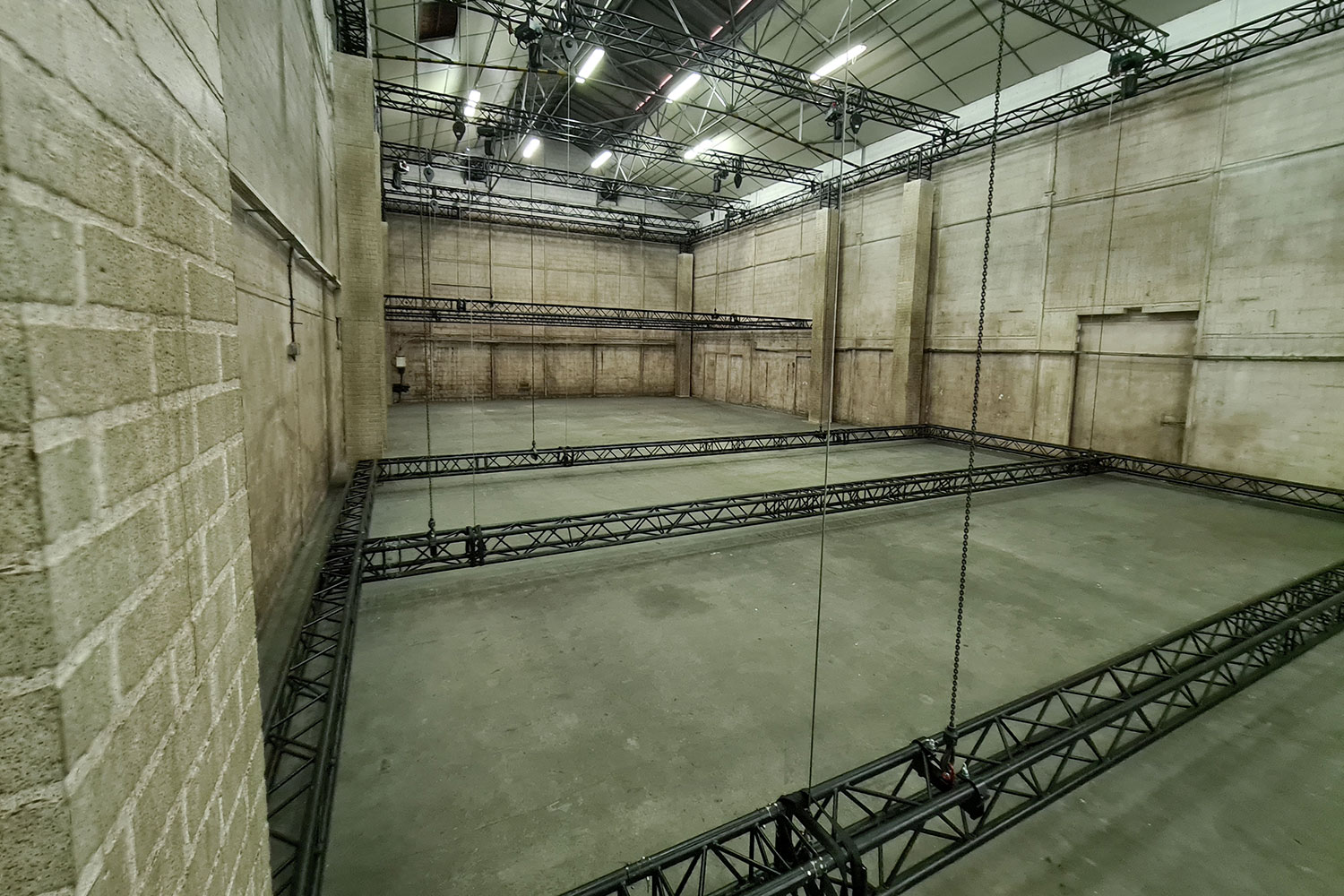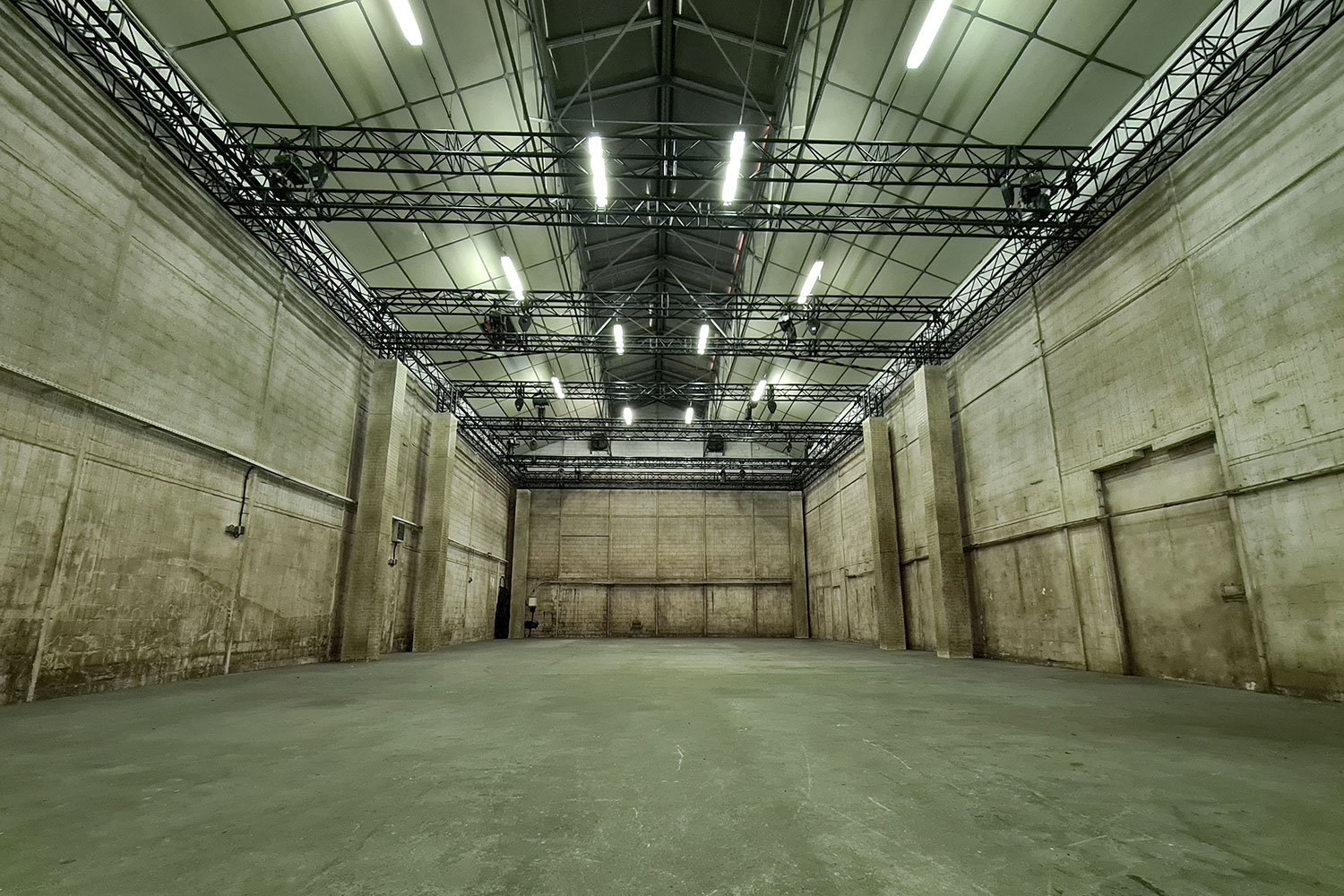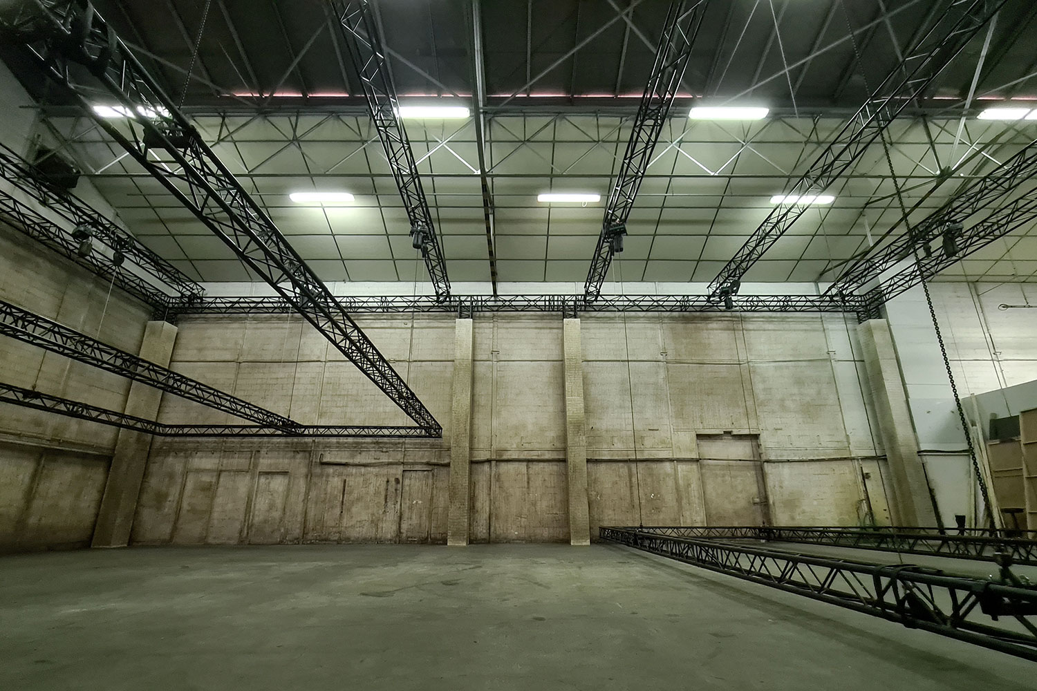 Le plateau « Hangar » est un espace de tournage brut qui recrée parfaitement une ambiance industrielle avec ses murs patinés et ses accessoires d’origine (grande porte acier, gaines inox, rideau de fer...).